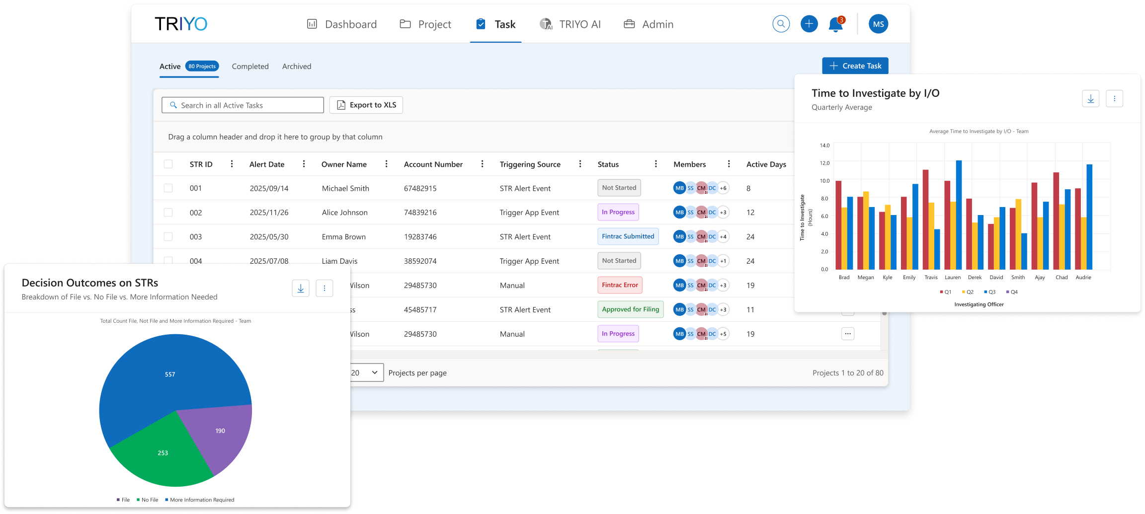 Close the loop from detection to submission. TRIYO tracks every STR from start to finish — ensuring accountability, transparency, and complete regulatory confidence.